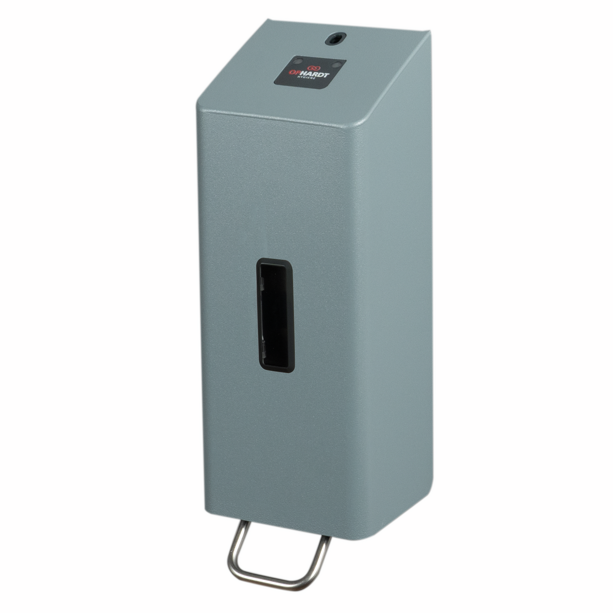 The manual UDU 11 T universal dispenser is suitable for liquid soaps, disinfectants or alcogels as standard. However, you can also order containers with a pump for foam soaps or with a spray pump for disinfectants as accessories. The dispenser has a centred viewing window with a frame to check the fill level and a hood with a safety catch. The soap dispenser is lockable and has a stainless steel operating lever. The contents can be freely selected.