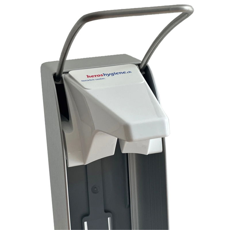 The attractive 500 ml disinfectant dispenser for disinfectants, liquid & foam soaps with a short arm lever is an eye-catcher in any environment. The high-quality dispenser is available in anodized aluminium. It can be filled with different pumps or disposable bags. A foam pump is available as an accessory for foam soaps, and plastic pumps are also available. The dispenser can be easily mounted on any type of wall.