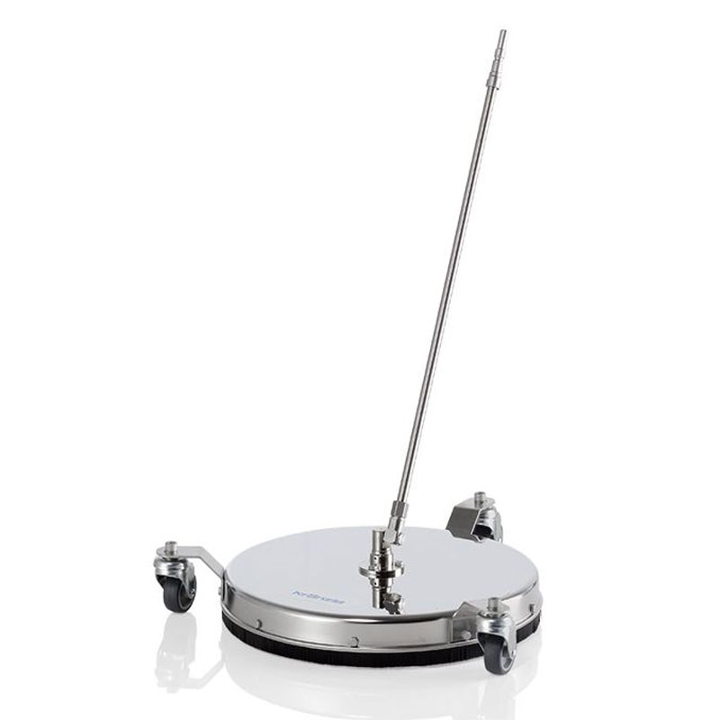 Le Round Cleaner INOX 410 de KRÄNZLE avec raccord enfichable D12 est un accessoire idéal pour ton nettoyeur haute pression Kränzle. Fabriqué en acier inoxydable de haute qualité, le Round Cleaner est idéal pour nettoyer sans effort et sans éclaboussures les surfaces au sol stabilisées comme les allées, les trottoirs, les terrasses, ainsi que les surfaces verticales comme les façades, les parois des bateaux, etc.