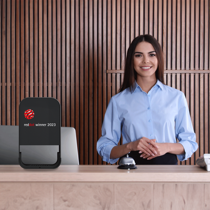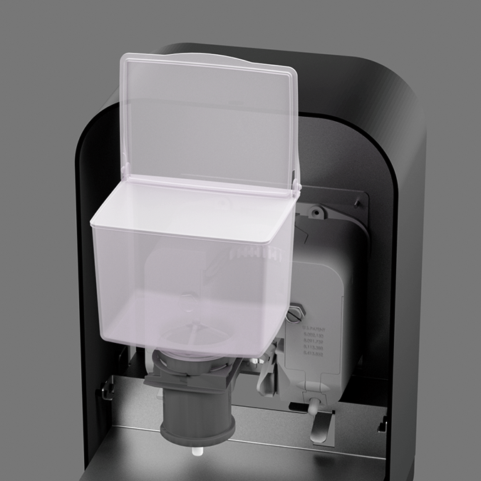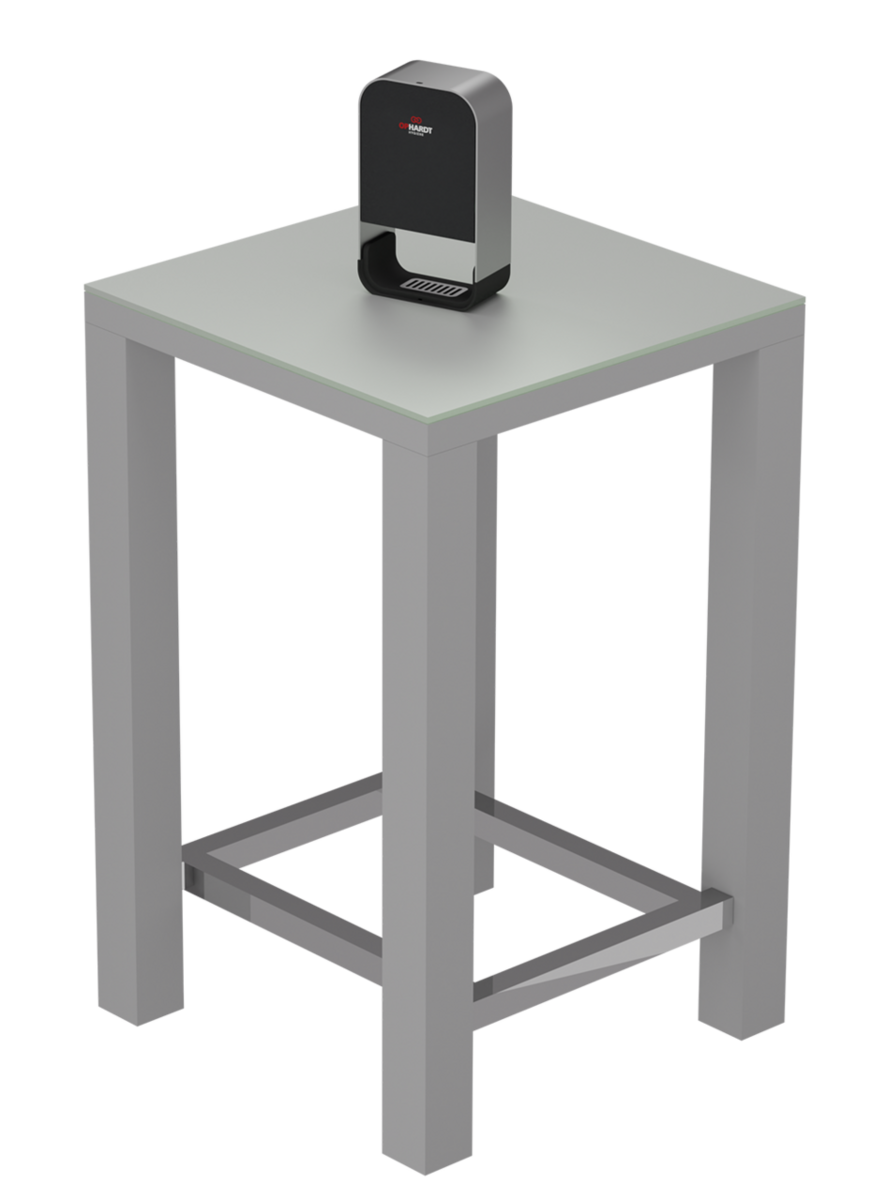 Der Praesidio Mini ist ein berührungsloses Händedesinfektionsgerät für alkoholische Händedesinfektionsmittel aus eloxiertem Aluminium. Die Türe besteht aus Edelstahl mit Anti-Fingerprint-Beschichtung. Die Bedienung ist von beiden Seiten möglich. Der Präsidio lässt sich abschliessen und ist mit CleanTip Technologie (kein Nachtropfen) ausgerüstet.