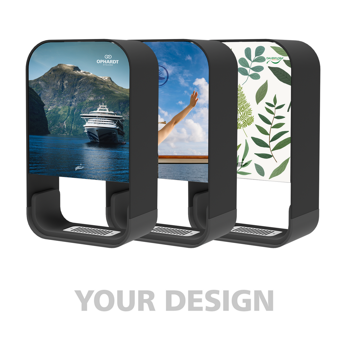 Der Spender kann mit einer Magnetfolie individuell gestaltet werden.