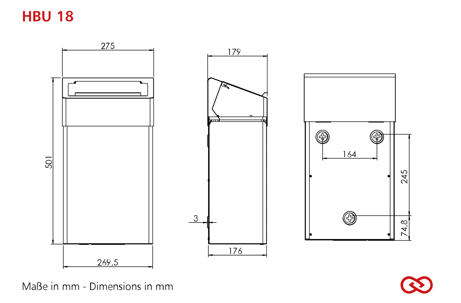 18l : L 275 x H 501 x P 179 mm