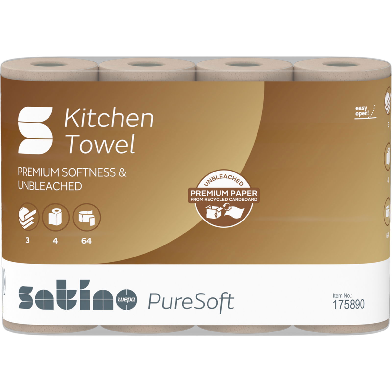 Die satino PureSoft Küchenrolle überzeugt als erstes Küchenpapier von satino by WEPA aus 100 % Recycling-Karton. Sie bietet eine besonders softe, saugfähige und leistungsstarke Premiumqualität. Ideal für nachhaltige Haushalte und den professionellen Einsatz. Das ungebleichte Papier ist lebensmittelecht, hygienisch und mehrfach umweltzertifiziert.