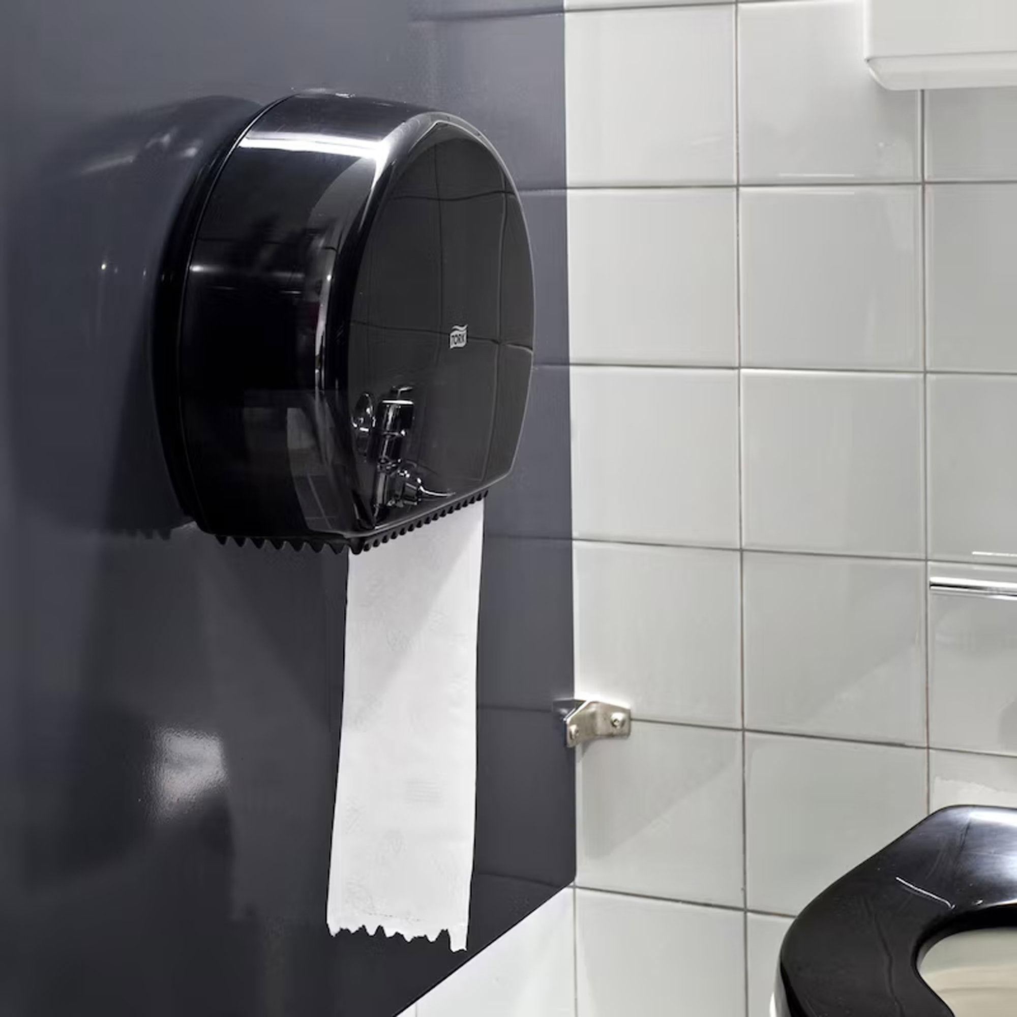 Il dispenser Tork per carta igienica Mini Jumbo, nel design Elevation, è progettato per i bagni con un'alta frequenza di visitatori e combina una grande capacità con un aspetto ordinato. La soluzione a bassa manutenzione mantiene la carta igienica disponibile in modo affidabile, mentre il freno del rotolo integrato riduce il consumo impedendo lo srotolamento involontario. Un supporto intelligente assicura che i rotoli vengano consumati il più possibile, riducendo gli sprechi. La finestra di visualizzazione facilita il controllo e indica in tempo utile quando è necessario effettuare il rifornimento.