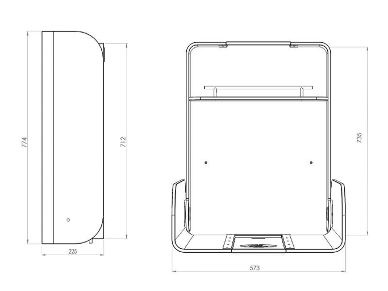 - dimensioni: L x A x P = 57,3cm x 77,4cm x 22,5cm