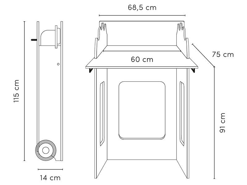 - dimensioni: L x A x P = 68,5 x 115 x 75cm