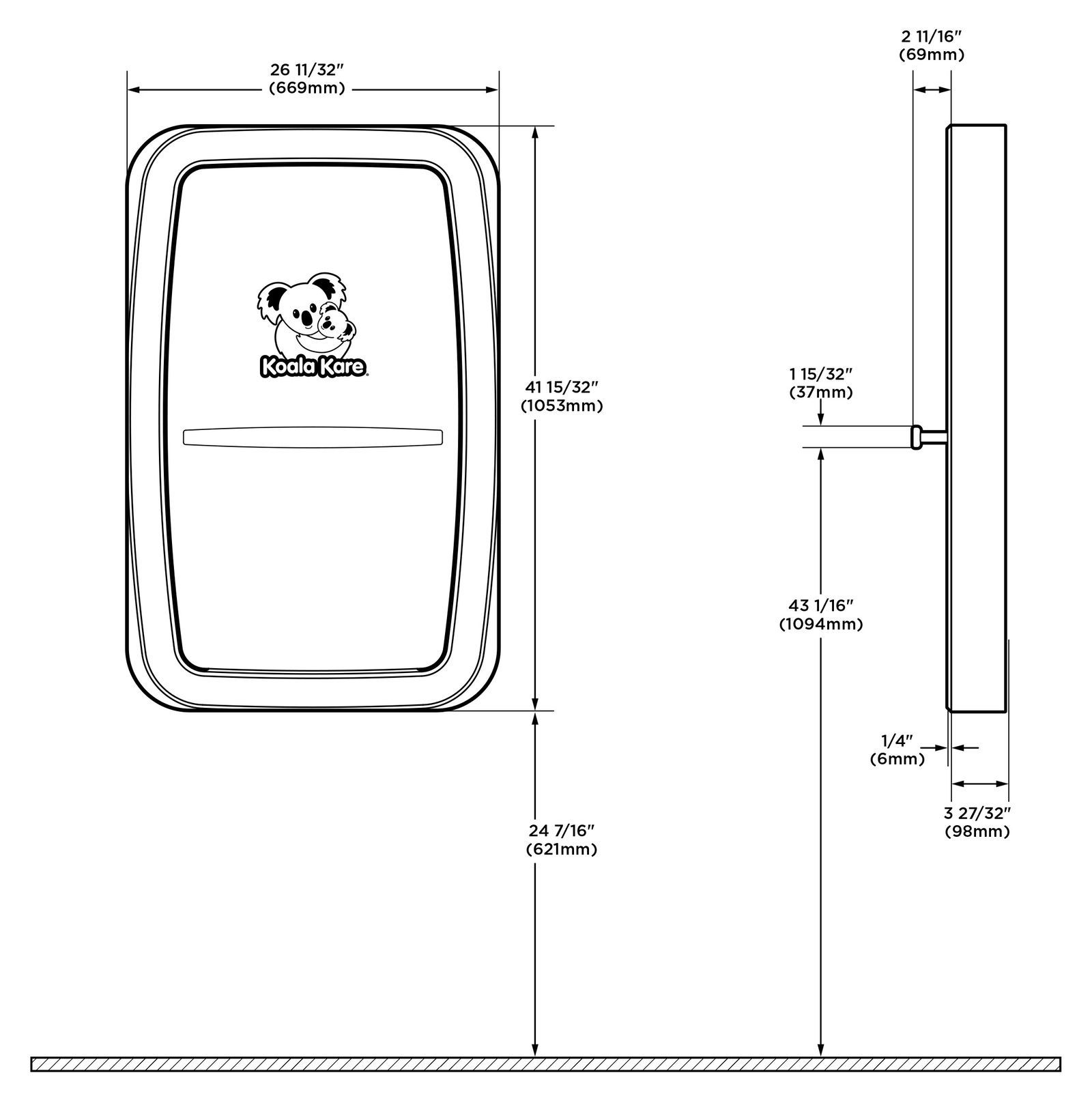 Der vertikale Unterputz-Wickelstation ist aus hochwertigem Edelstahl gefertigt für höchste Stabilität. Zu den durchdachten Annehmlichkeiten gehören der Microban®-Produktschutz, ein neu gestalteter Beutelspender und das Koala-Markenzeichen, das den Familien Komfort und das Versprechen einer durchdachten Unterbringung vermittelt.
