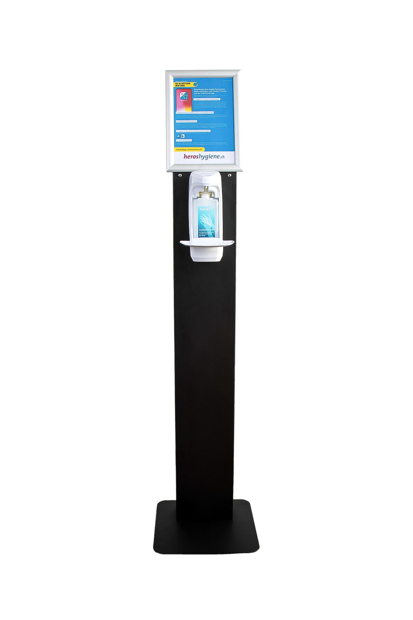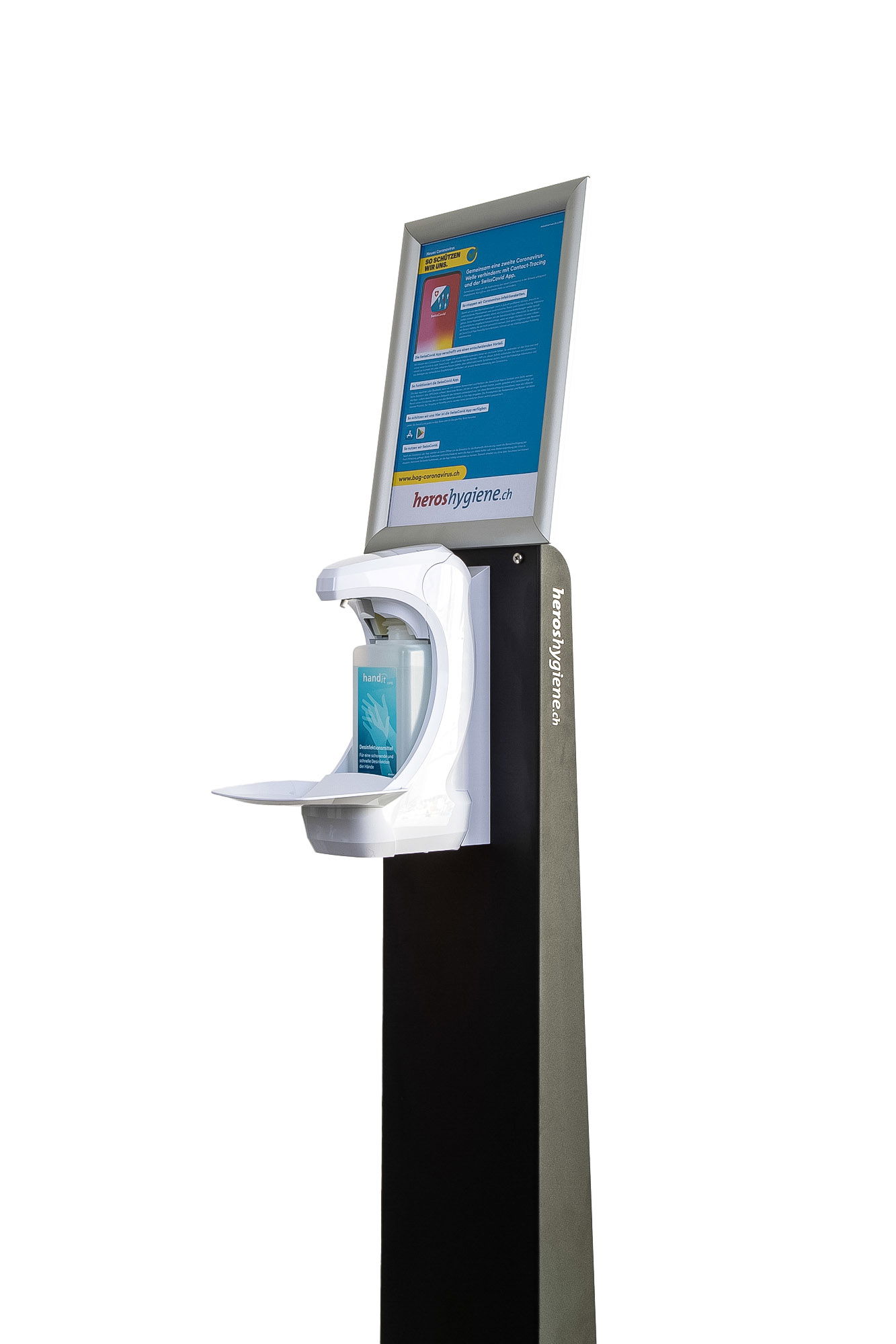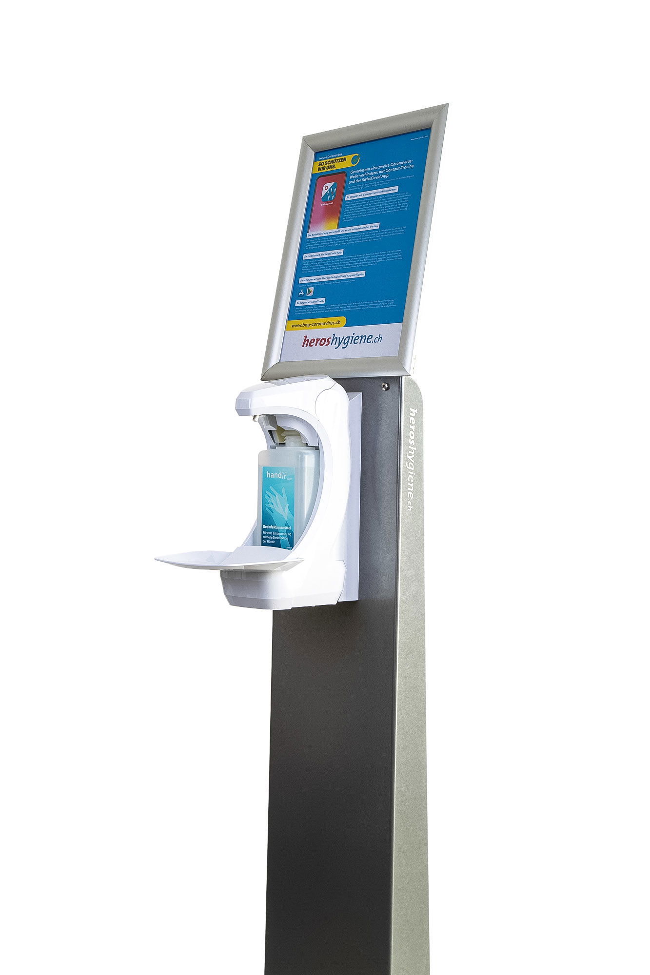 La nostra colonna di disinfezione è realizzata in robusto acciaio inossidabile. La stazione di disinfezione è prodotta localmente in Svizzera ed è disponibile con verniciatura a polvere nei colori grigio, bianco e nero. La stazione di disinfezione è abbinata a un dispenser di disinfezione touchless di alta qualità per flaconi Euro da 500 ml. Con il suo design moderno, la nostra colonnina di disinfezione offre la soluzione elegante ideale per garantire i necessari standard di igiene negli spazi pubblici.