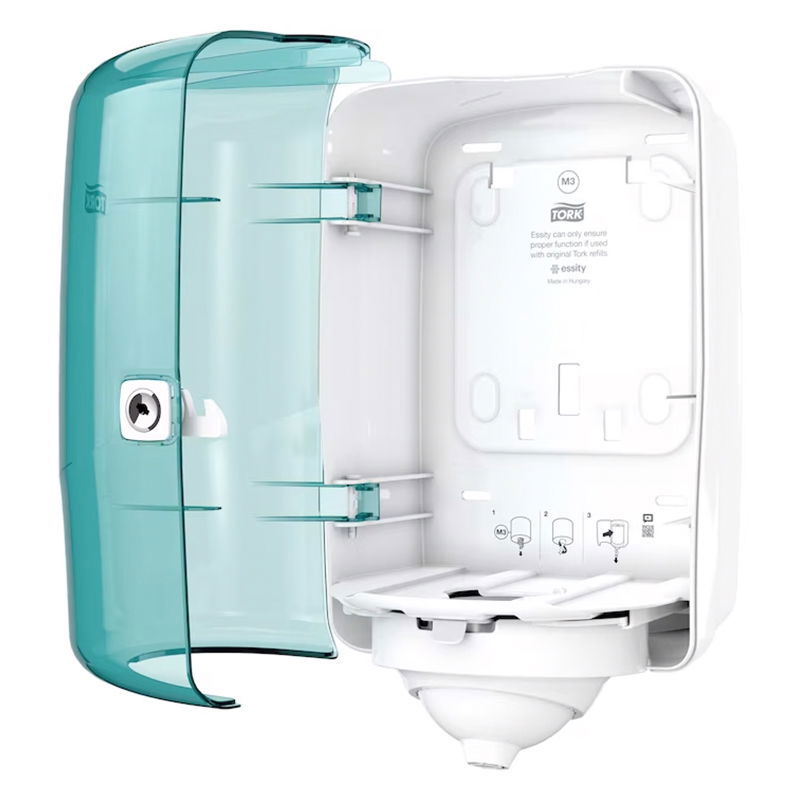 Der TORK M3 Reflex Einzelblatt Mini Innenabrollungsspender ist ideal für das Abtrocknen von Händen und Abwischen von Oberflächen. Mit seiner platzsparenden und drehbaren Ausgabeöffnung passt er optimal in professionelle Umgebungen jeder Größe. Dank der praktischen Einzelblattausgabe reduziert dieses System den Verbrauch im Vergleich zum Tork Innenabrollungsspendersystem um bis zu 37 %. Die einhändige Bedienung vereinfacht die Nutzung. Es wird effektiv nur das Papier berührt, was benutzt wird, wodurch das Risiko einer Kreuzkontamination verringert wird. Der Spender besitzt eine seitliche Scharnieröffnung.