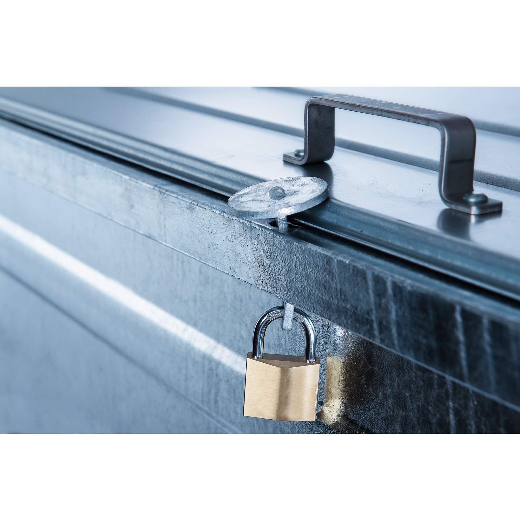 Der passende Verschlusspilz mit Vorhängeschloss für die 600 und 800 Liter Stahlcontainer von Vercon.